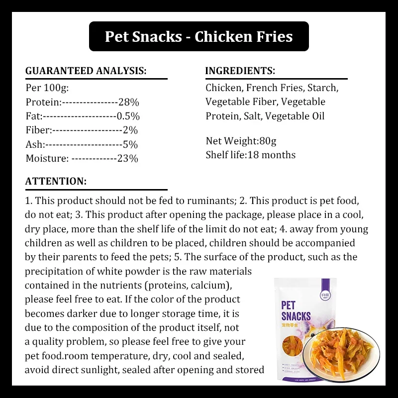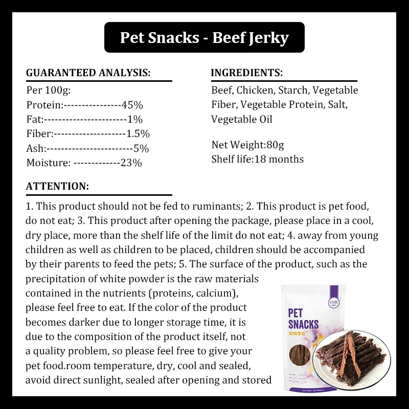 - Recipe: Beef,chicken,starch,vegetable fiber,protein,salt,vegetable oil